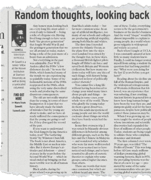 Thomas Sowell is considered by many to be one of the greatest minds of the past half-century. A best-selling author, economist, photographer, syndicated columnist, historian, and academic, Sowell cannot be described by one vocation. “As public intellectuals go, few have been more prolific than Thomas Sowell,” said Washington Post.